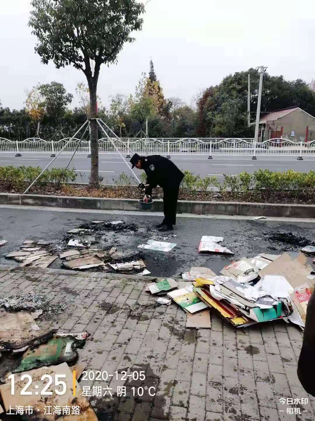 12月11日,宗保公司駐三林市容項目隊員協(xié)助消防,維護(hù)火災(zāi)現(xiàn)場秩序。