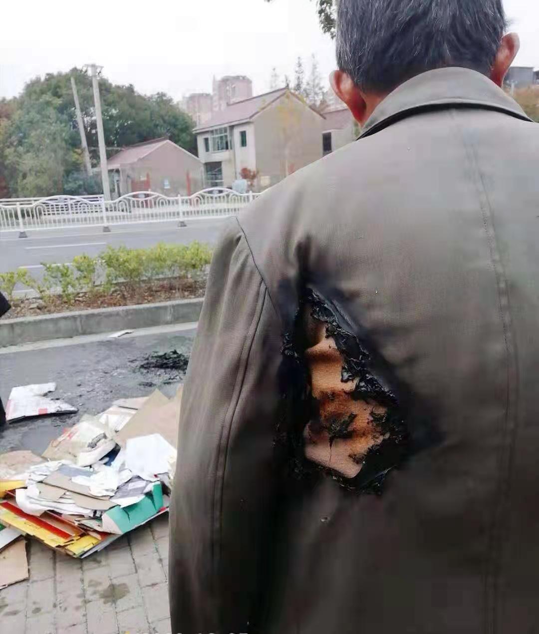 當(dāng)日12:10左右,戚思功巡邏至江海南路與新塘路交叉口向南約30米處時,發(fā)現(xiàn)前方一收廢品老人騎著三輪車,車上的廢品冒煙起火,而此時老人還未發(fā)覺,仍在低頭猛踩踏板往前趕。