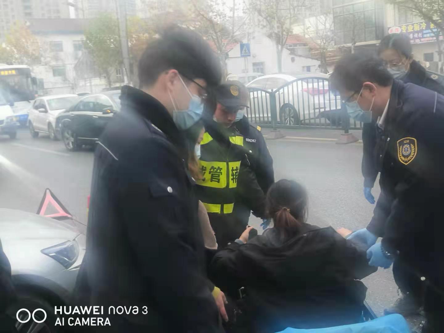 因事發(fā)地在車流量大的馬路上,考慮到老人的安全,細(xì)心的任明強便守在老人身邊,同時立刻撥打周東派出所和120急救中心電話。
