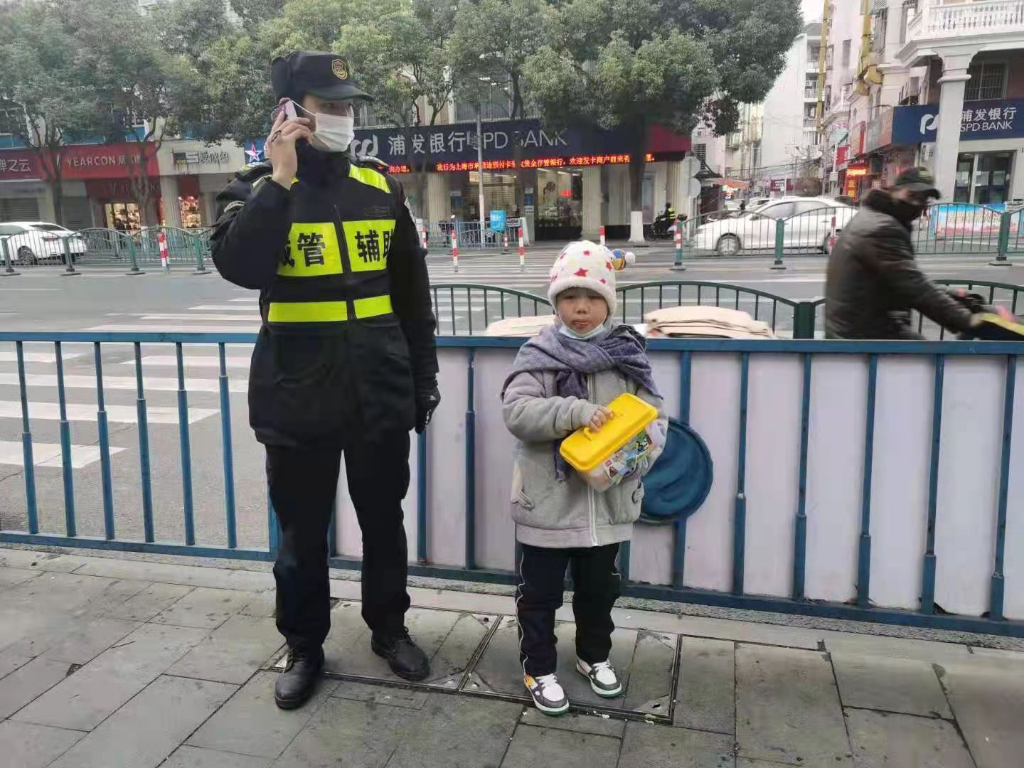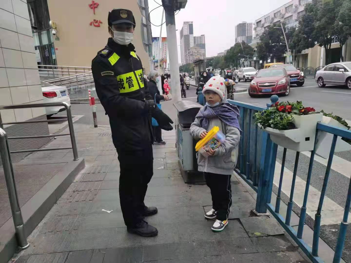 1月5日,宗保公司駐周浦市容機動組隊員鄒學峰幫助走散女童找到家人。