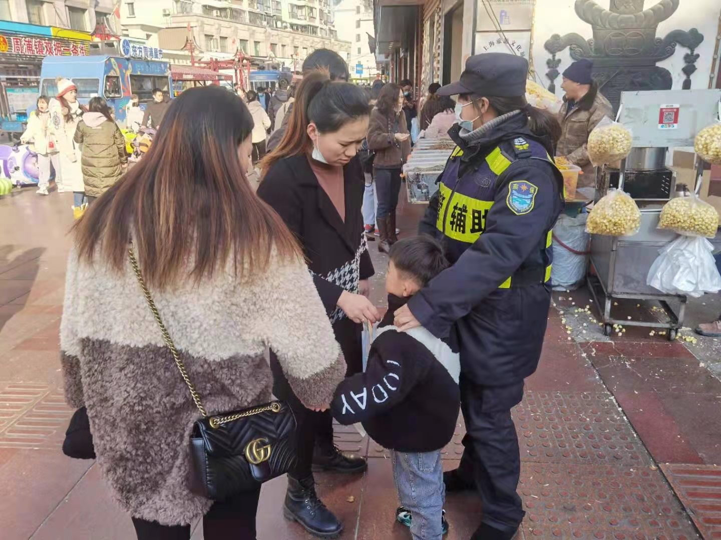 1月2日,宗保公司駐周浦市容項目隊員曹秋霞幫助走散男童找到家人。