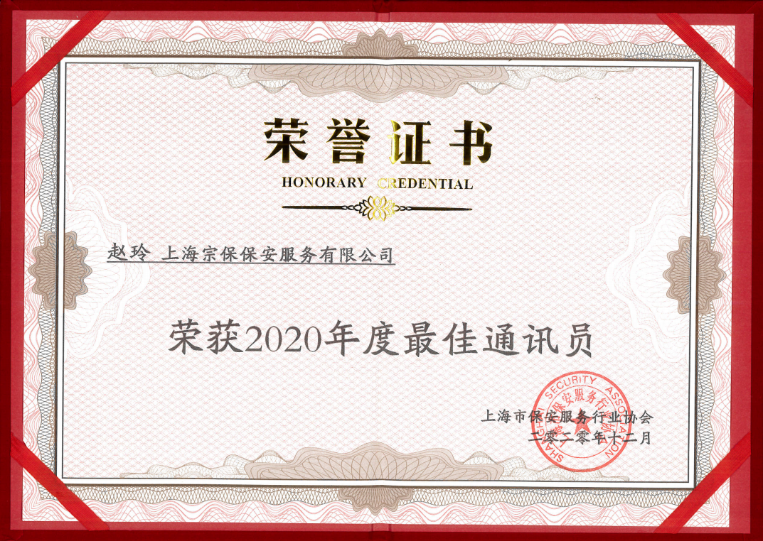 會議總結了2020年度通訊員工作情況,部署了下階段工作任務,表彰了年度優(yōu)秀通訊員、2020年上海市保安服務行業(yè)攝影大賽得獎者。宗保公司榮獲上海市保安服務行業(yè)協(xié)會第一屆攝影比賽三等獎,公司副經理趙玲被評為2020年度最佳通訊員。