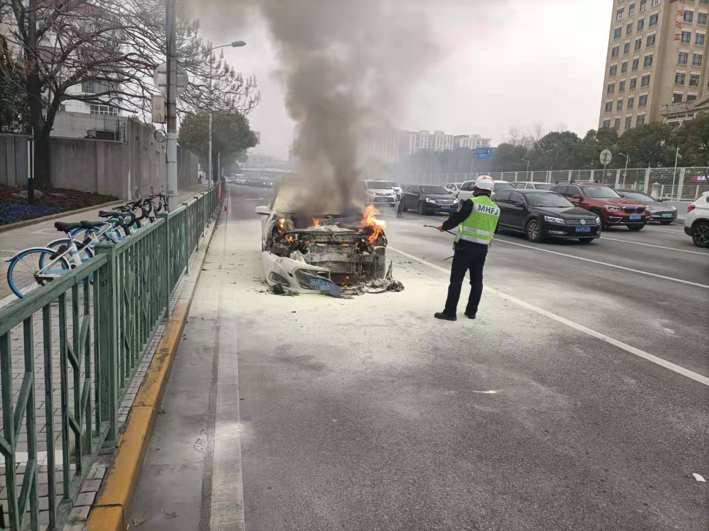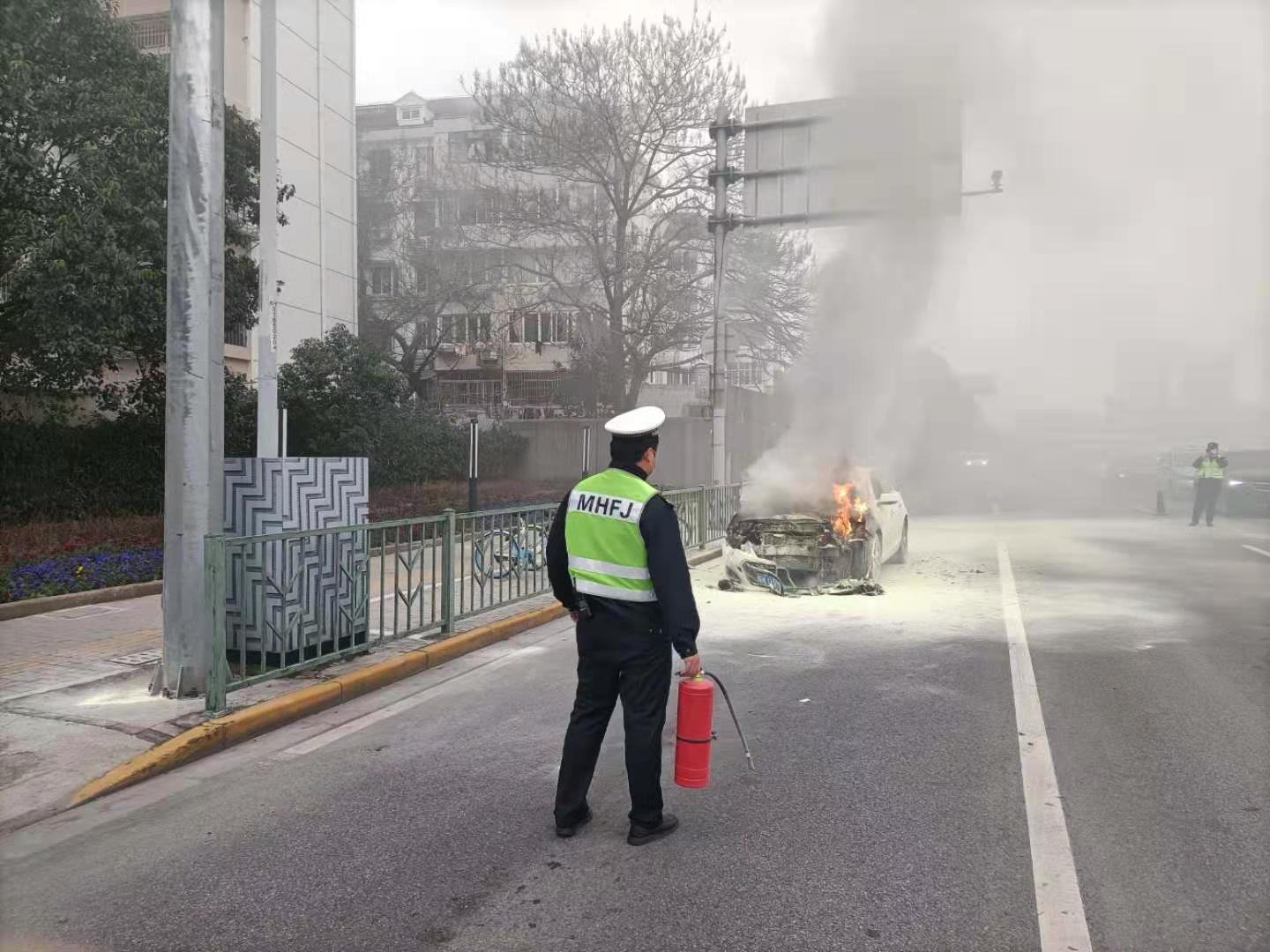 車輛追尾突自燃  妥善處置保暢通—虹橋交管輔警隊(duì)員幫助自燃車輛滅火