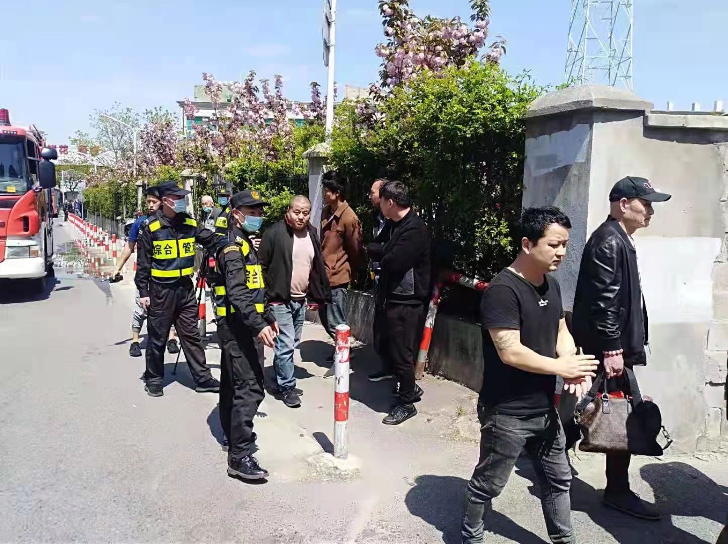 4月6日,宗保公司駐三林市容項(xiàng)目隊(duì)員協(xié)助消防人員和民警維護(hù)火災(zāi)現(xiàn)場(chǎng)道路交通秩序。