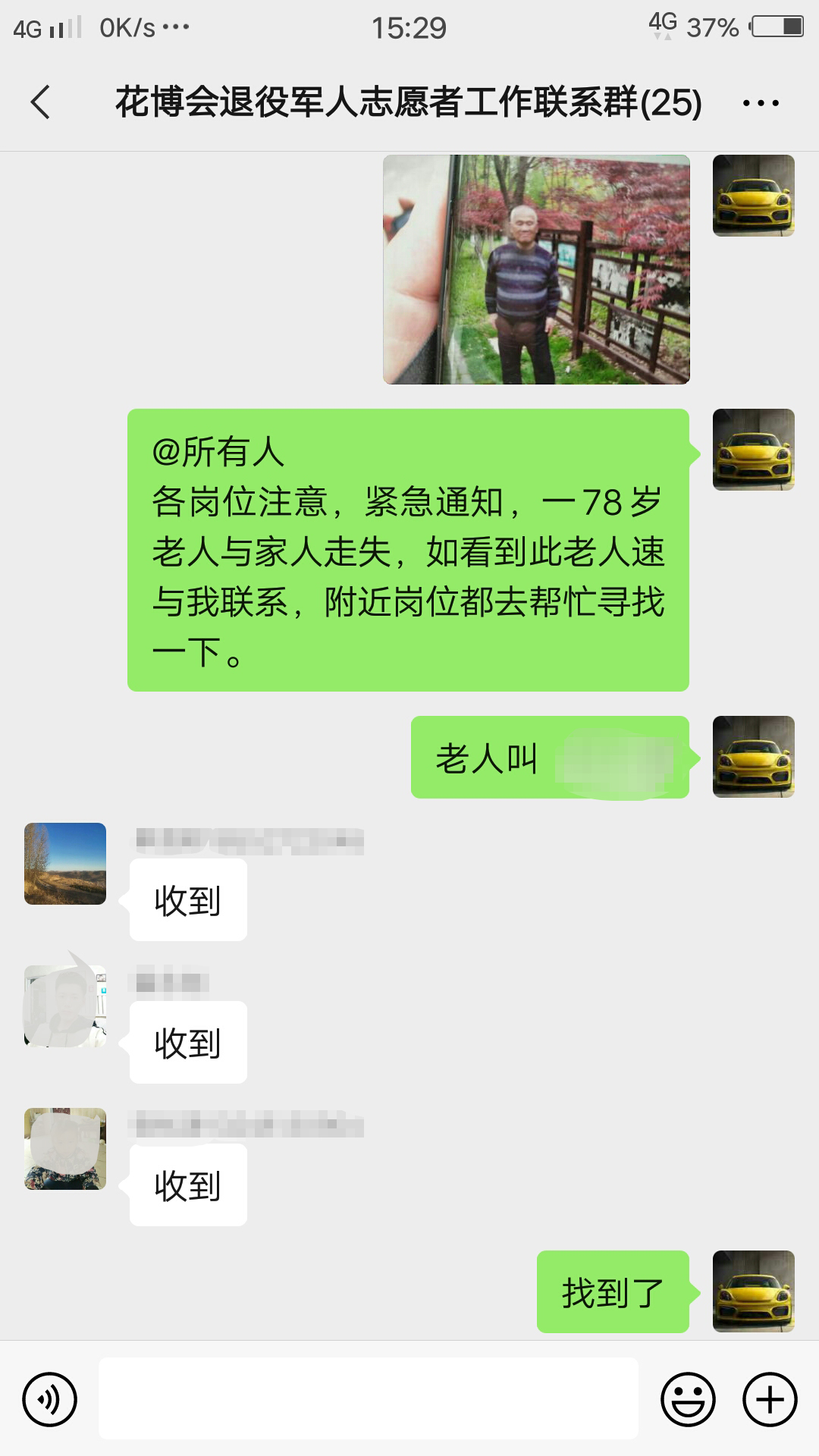 當(dāng)天15:06,正在值勤的公司花博會(huì)黨員志愿者梁澤迪接到游客求助,稱家里78歲的老人在棕櫚路觀看雜技表演時(shí)不見了,老人沒帶手機(jī),無(wú)法聯(lián)系上他,希望梁澤迪能夠幫助其找到老人。了解情況后,梁澤迪第一時(shí)間報(bào)告了負(fù)責(zé)人王留永。