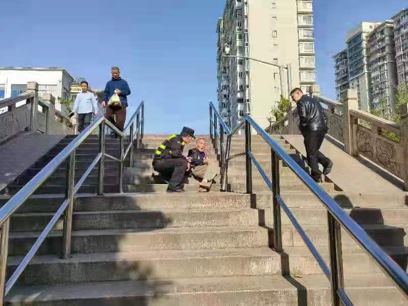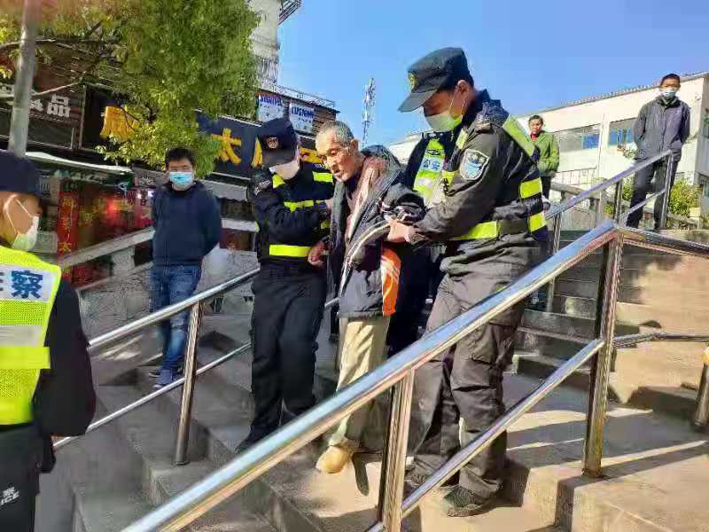 當(dāng)日15:30,李彥兵巡邏至東南萊市場(chǎng)湯家木橋時(shí),看到一位約八旬的老人躺坐在臺(tái)階上,就立即上前詢問,老人用手比劃著表示身體并無(wú)大礙。