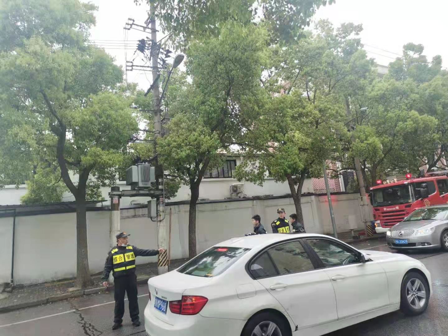 4月11日,宗保公司駐三林市容項目隊員李三沅積極協(xié)助消防人員和民警維護火災(zāi)現(xiàn)場交通秩序。