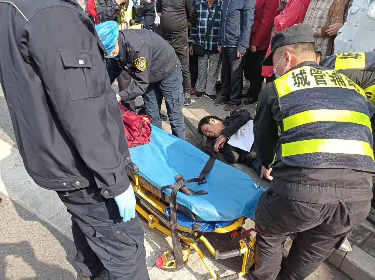 很快,120救護(hù)車和民警趕到現(xiàn)場,隊(duì)員協(xié)助民警將男子抬上救護(hù)車,送往醫(yī)院救治。
