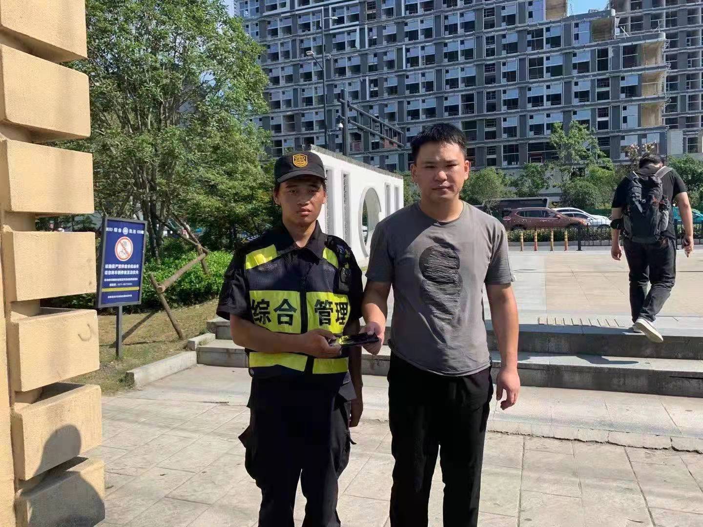 隊(duì)員巡邏撿手機(jī) 歸還失主獲表?yè)P(yáng)—良渚地鐵菜場(chǎng)項(xiàng)目隊(duì)員撿到手機(jī)