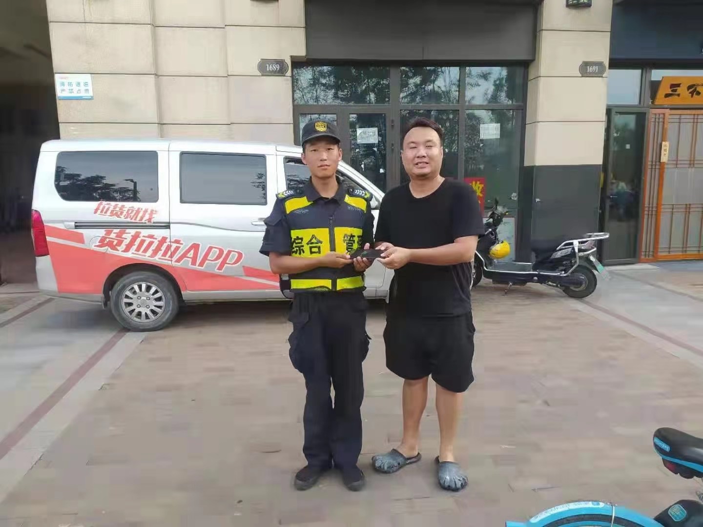 十幾分鐘后,一男子匆匆趕到現(xiàn)場(chǎng),陳龍核對(duì)身份確認(rèn)無(wú)誤后,將手機(jī)交還給男子。為表示感謝,該男子特意聯(lián)系了項(xiàng)目所屬城管物流中隊(duì),點(diǎn)名表?yè)P(yáng)了民泰隊(duì)員陳龍拾金不昧的行為。