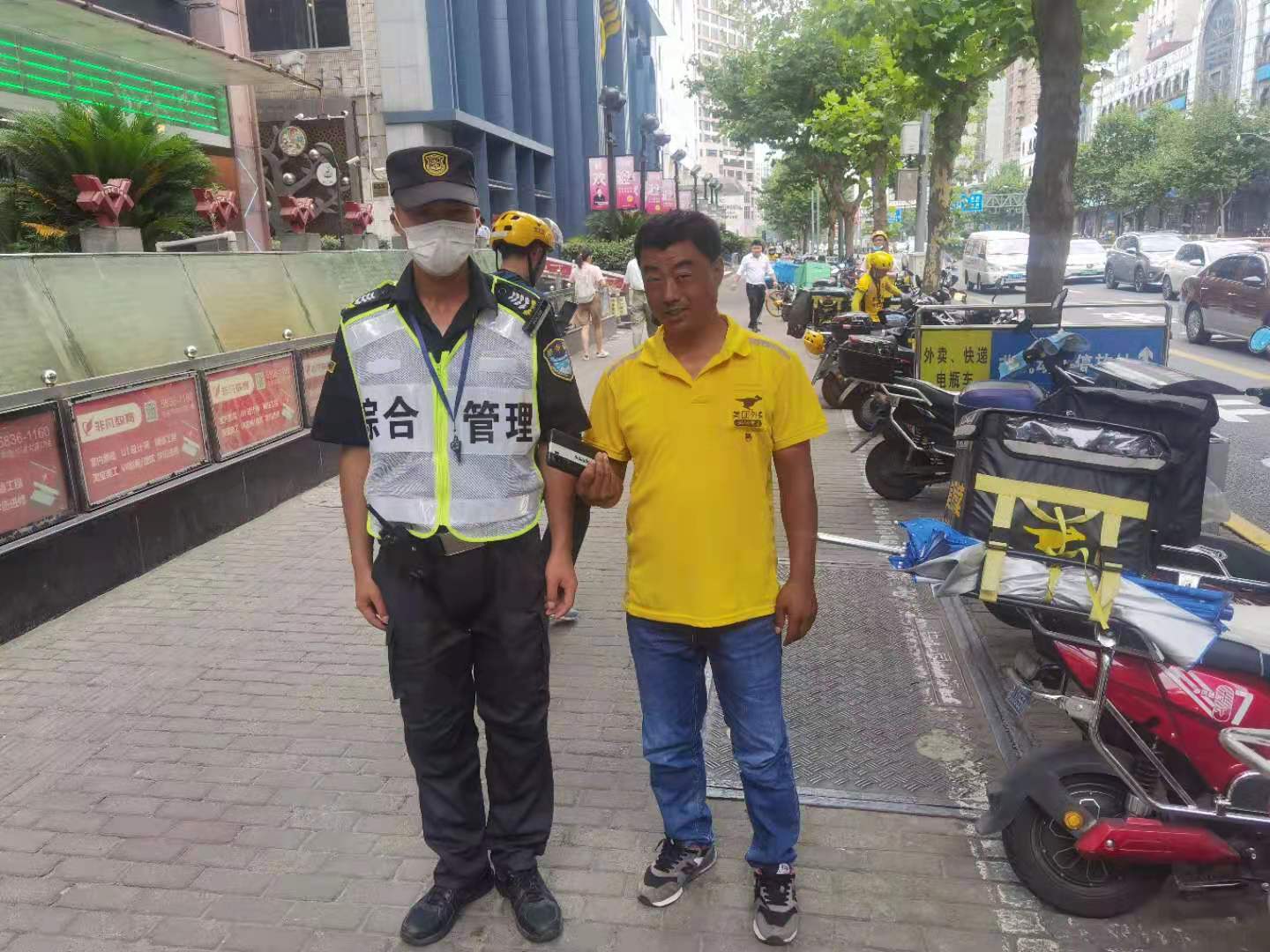 不一會(huì)兒,一位身著黃色外賣服的男子騎車趕到現(xiàn)場(chǎng),經(jīng)核對(duì),確認(rèn)男子是失主后,潘興科將手機(jī)歸還給他。