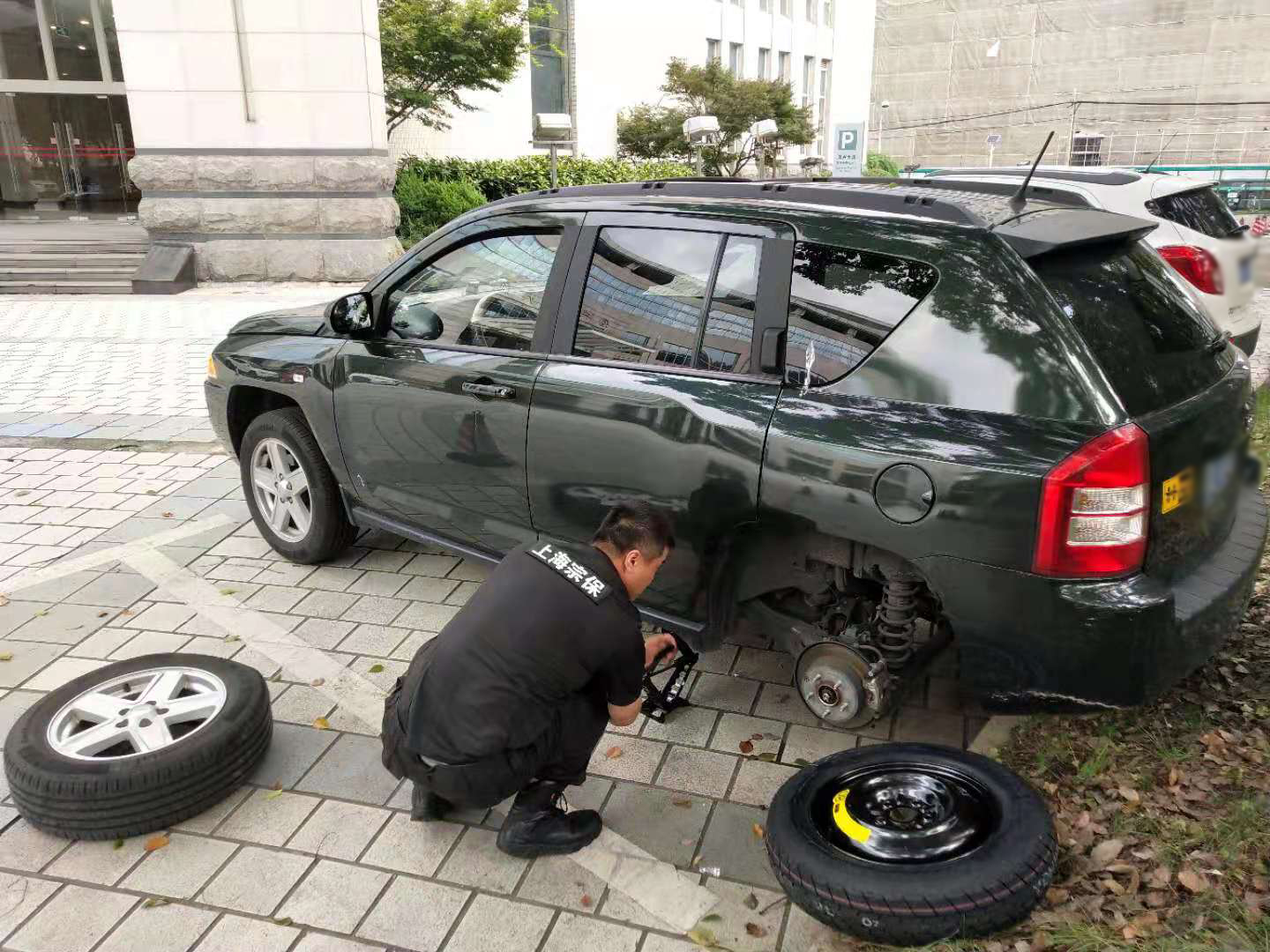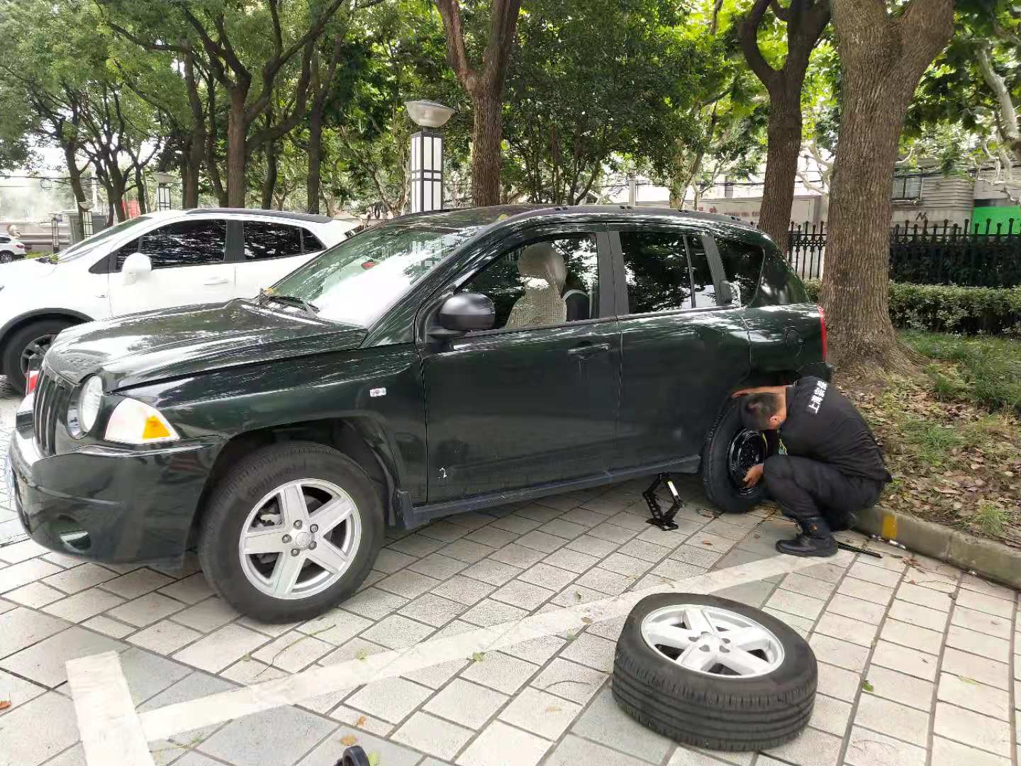 輪胎扎釘無(wú)法行 隊(duì)員換胎解難題—市委黨校項(xiàng)目隊(duì)員幫助黨校學(xué)員更換車(chē)備胎
