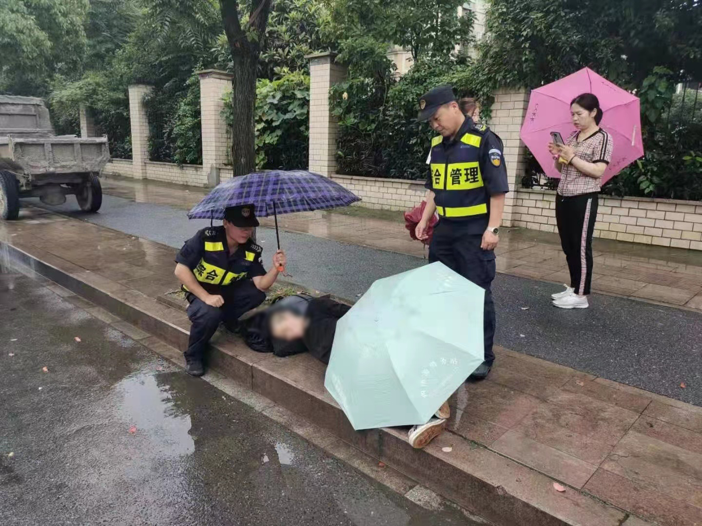 7月3日,浙江民泰駐閑林城管項(xiàng)目隊(duì)員幫助醉酒男子。
