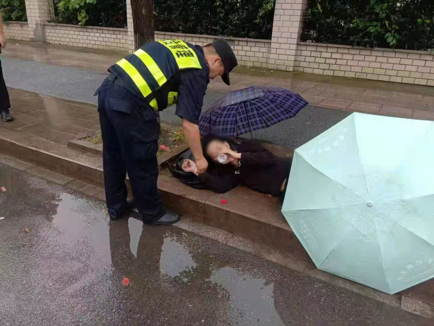 張騰剛走近男子就聞到一股濃烈的酒味,呂劍強(qiáng)嘗試叫醒男子,但醉酒男子沒(méi)有反應(yīng)。此時(shí)正在下雨,兩人便撐起雨傘為其遮雨,并將情況向組長(zhǎng)報(bào)告。