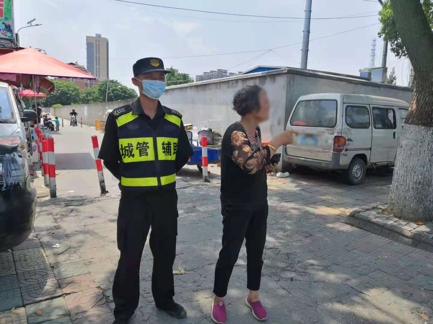 7月10日,宗保公司駐周浦市容項(xiàng)目隊(duì)員楊峰幫助迷路老人回家。