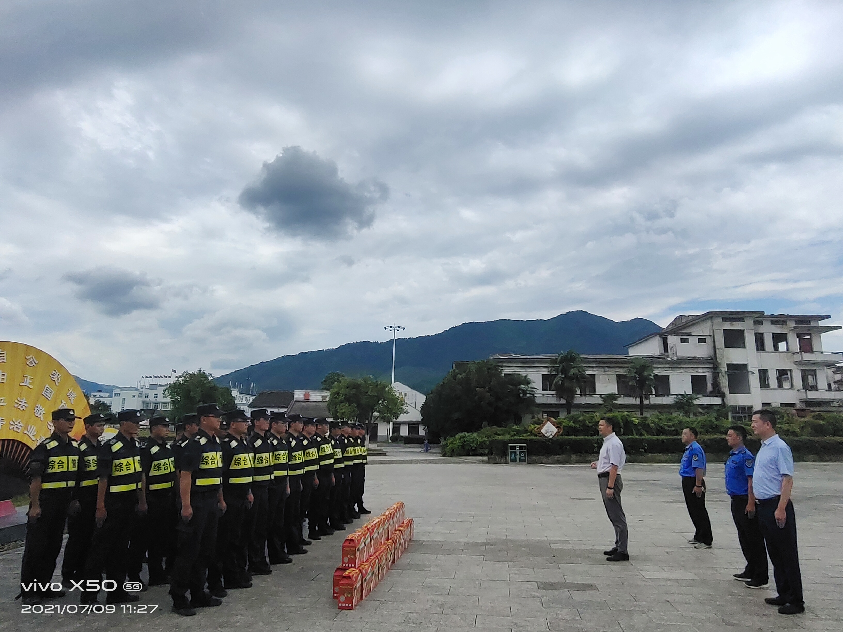 7月9日上午,黃山區(qū)城市管理行政執(zhí)法局局長汪雷春、執(zhí)法大隊教導員黃亮、中隊長曹太平等一行,冒著炎炎烈日,慰問奮戰(zhàn)在一線的宗保公司隊員。