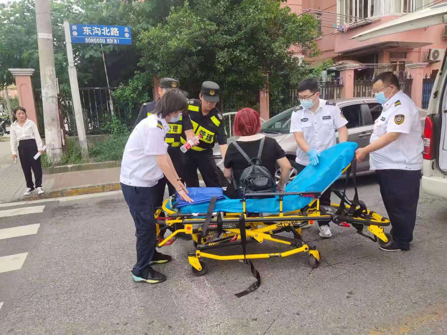 很快,120救護(hù)車趕到現(xiàn)場,隊(duì)員將女子扶上擔(dān)架,由救護(hù)車送往醫(yī)院救治。