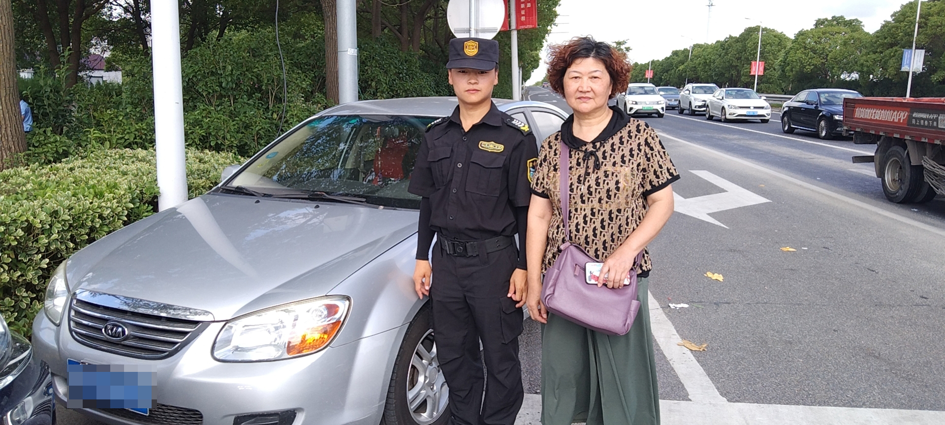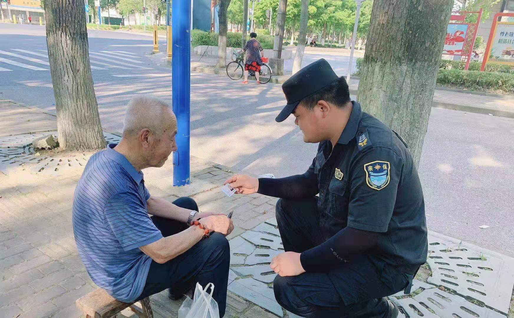 7月14日,宗保公司駐崇明長興島市容項(xiàng)目隊(duì)員李港軍幫助迷路老人回家。