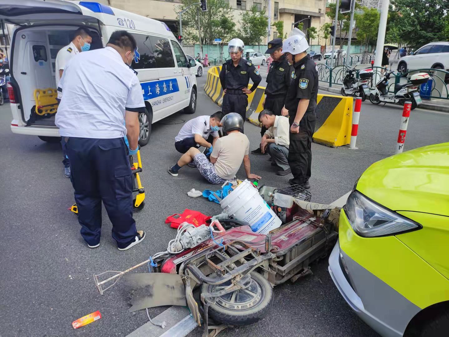 很快,交警和120救護(hù)車趕到現(xiàn)場,定好責(zé)任后,隊(duì)員協(xié)助交警將電瓶車推到路邊,幫助救護(hù)人員將受傷駕駛員送上救護(hù)車,然后回到崗位繼續(xù)值勤。