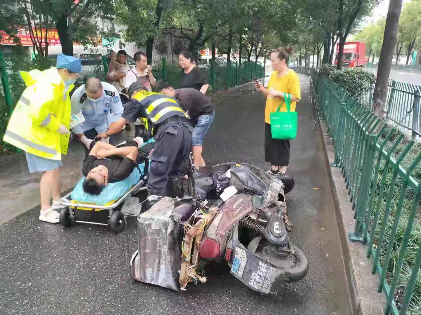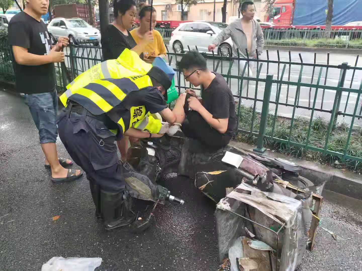 雨天男子騎車摔傷 隊(duì)員遇到熱心幫助—良渚物流項(xiàng)目隊(duì)員幫助騎車摔傷男子
