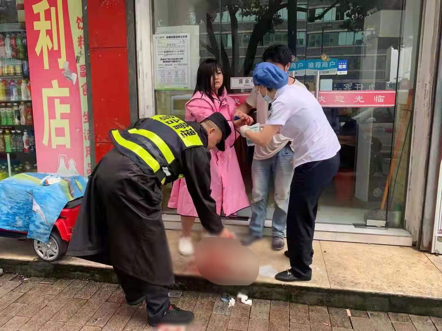姑娘騎車摔倒受傷 隊(duì)員幫助就醫(yī)治療—東湖市容項(xiàng)目隊(duì)員幫助受傷姑娘