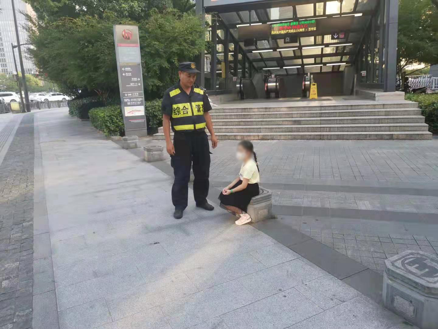 8月8日,浙江民泰駐南苑市容項(xiàng)目隊(duì)員杜光昌幫助走散女童找到家人。