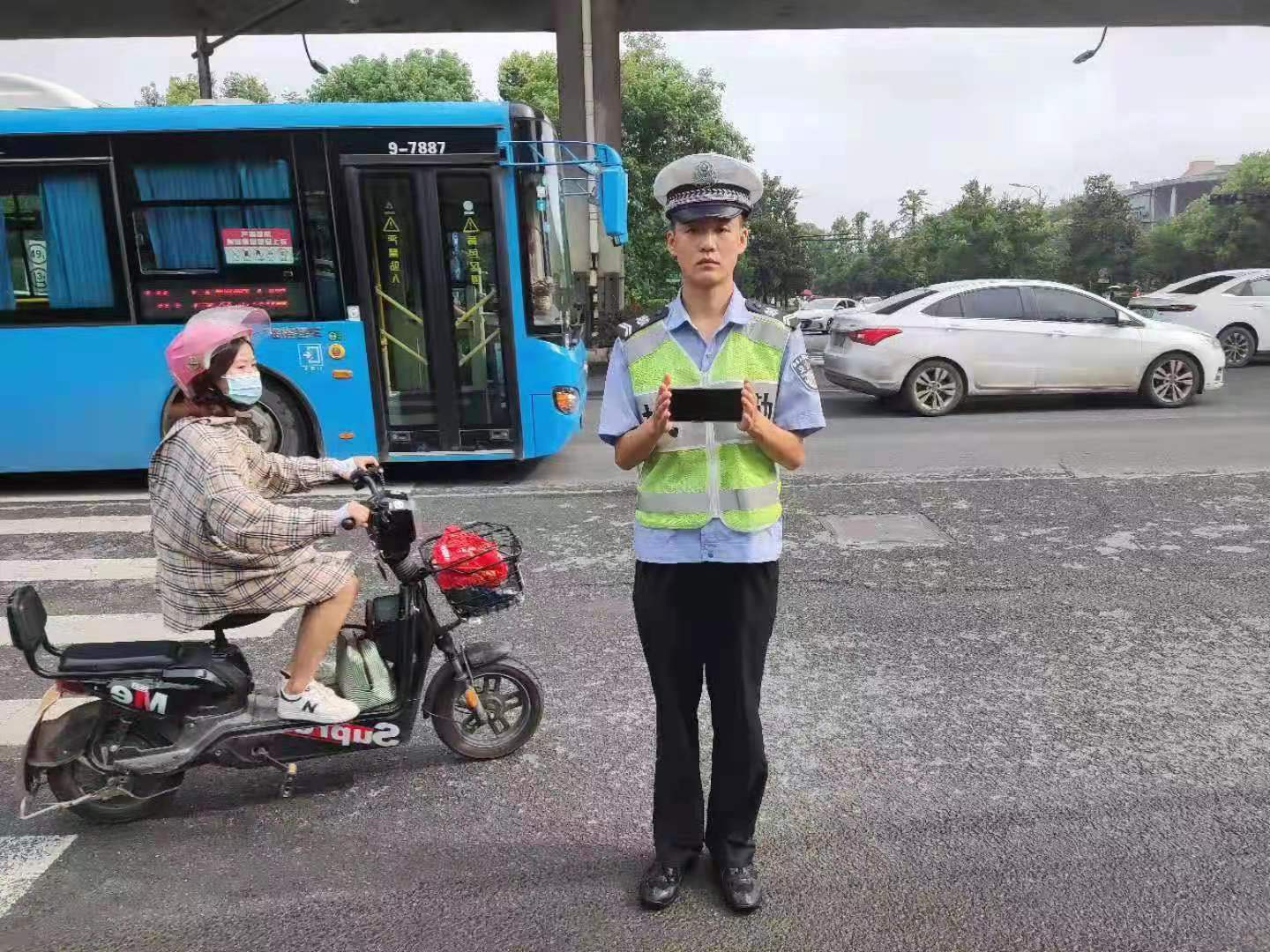 當天8:10,顏衛(wèi)基在天目山路閑林大道路口值勤,一中年男子騎電動車從身邊經過時,口袋里的手機掉落在地。