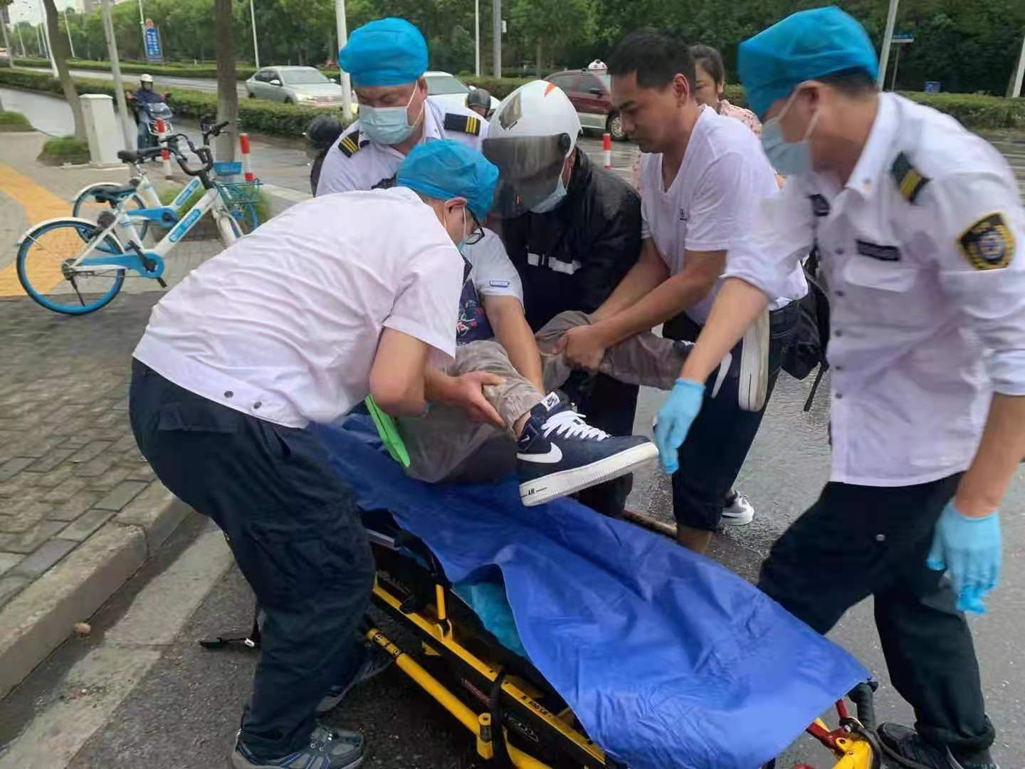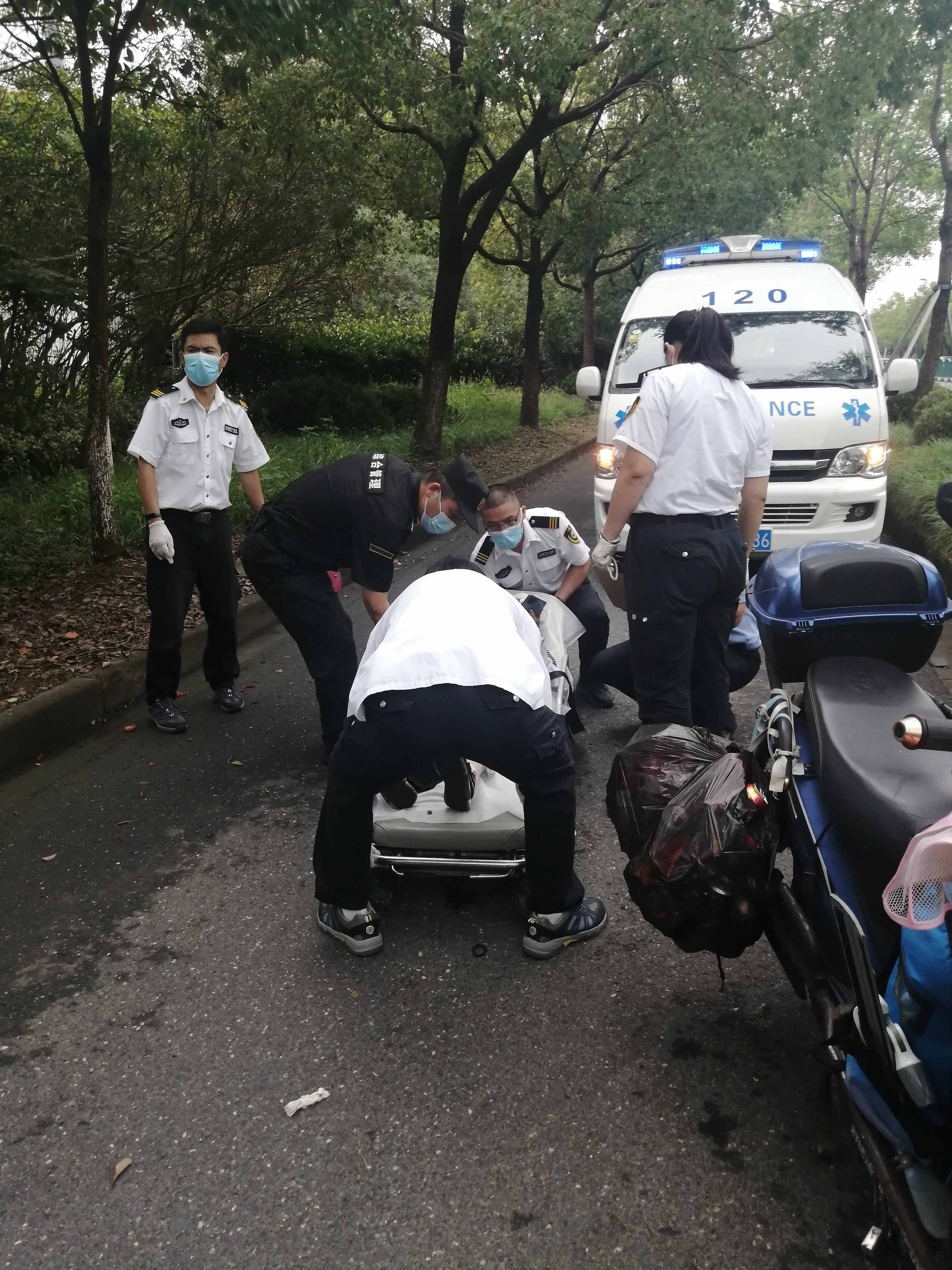 8月10日,宗保公司駐周浦市容項(xiàng)目隊(duì)員熱心幫助騎車摔傷男子。