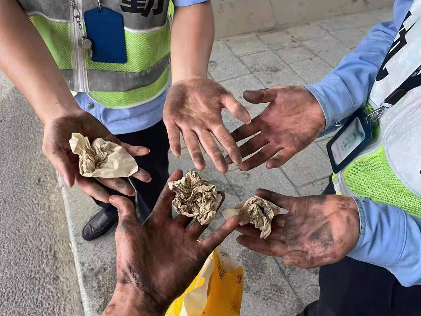 3名隊(duì)員手上、胳膊上都是機(jī)油,潘光波的手也被擦傷,但大家認(rèn)為能幫助他人,即使身上弄臟了、手劃破了也是值得的。