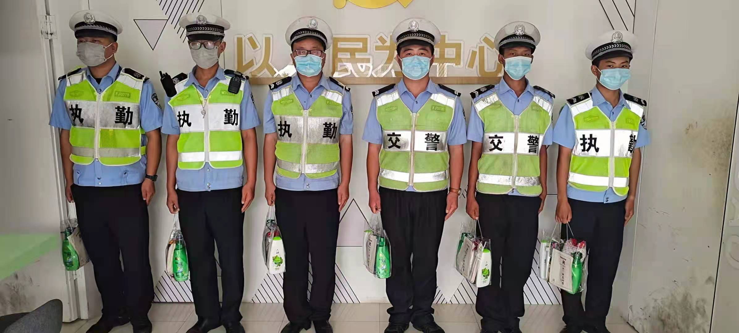 8月11日,余杭區(qū)中泰街道交警工作站站長王平、指導(dǎo)員應(yīng)海松冒著高溫慰問民泰公司駐中泰街道交管輔助項(xiàng)目隊(duì)員。