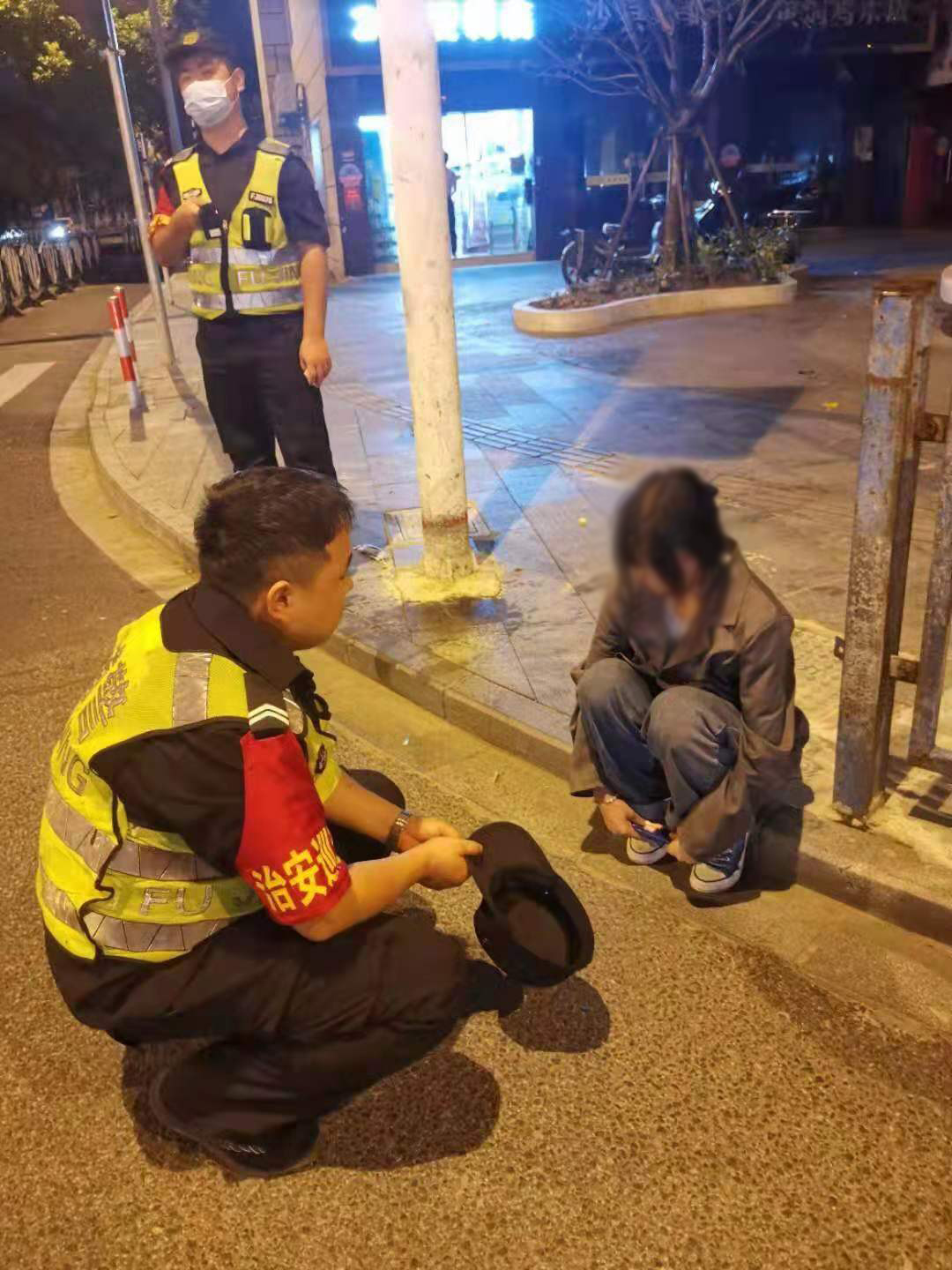 當天凌晨3:10左右,孫儒強、王甫川巡邏至年家浜路周康路路口時,發(fā)現一名大約20歲左右,上身穿淺色外套、下身穿藍色牛仔褲的醉酒女子坐在馬路邊大哭,嘴里一直嚷嚷著,情緒十分激動。