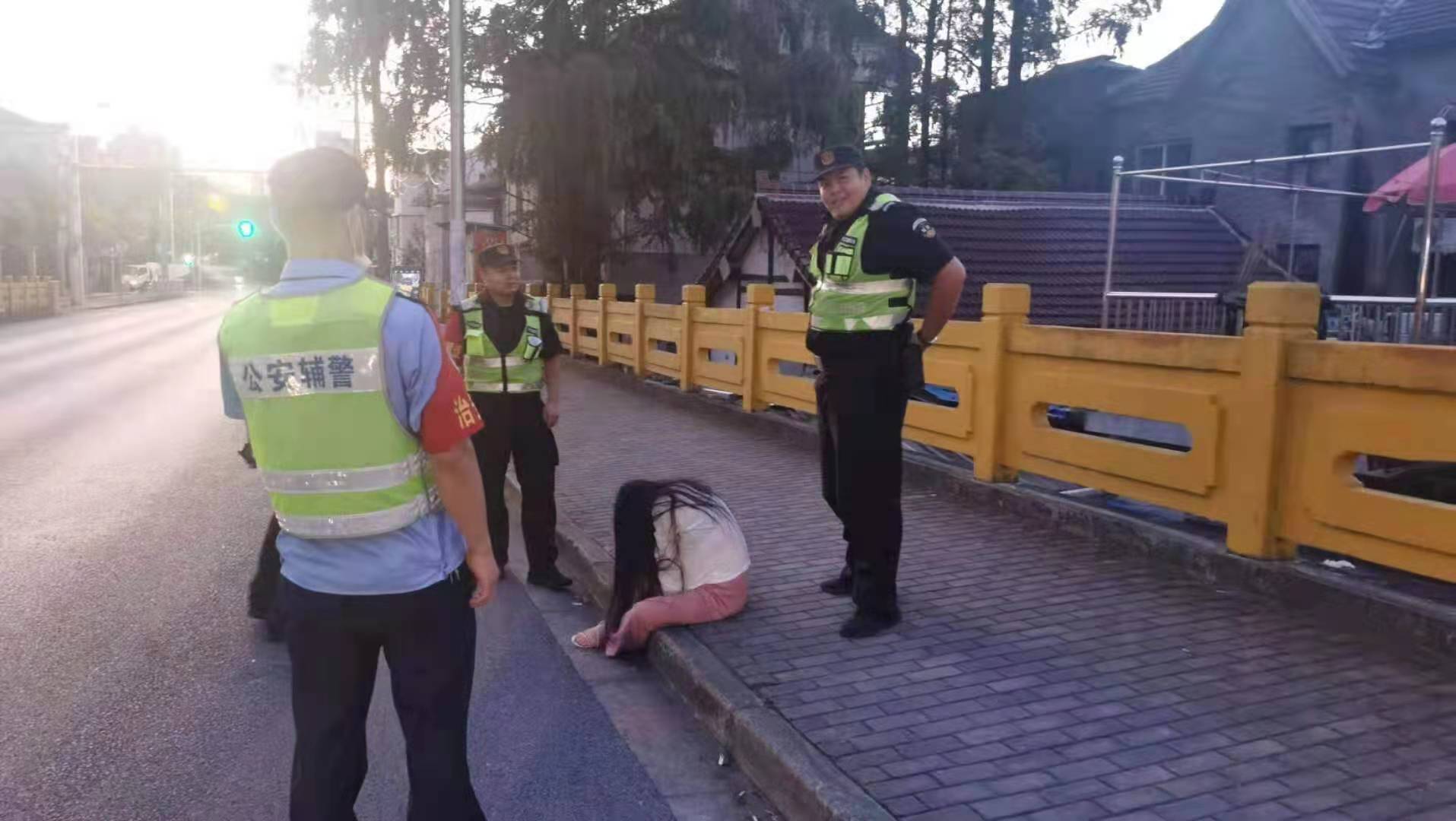 當天凌晨5:05,李武召、王楷迪、張永熠巡邏至周市路祝家港路祝家港橋時,發(fā)現一名大約20歲左右、身穿白色短袖、粉色褲子的醉酒女子坐在地上,一邊打視頻電話,一邊大聲哭叫,情緒顯得非常激動。