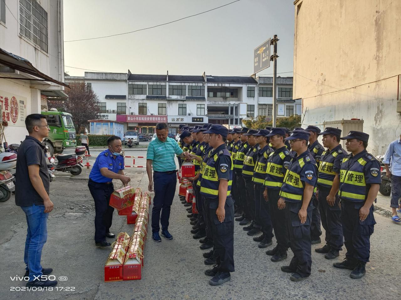 9月18日下午,黃山區(qū)城市管理行政執(zhí)法局局長(zhǎng)汪雷春、副局長(zhǎng)王磊、中隊(duì)長(zhǎng)曹太平一行慰問宗保公司駐黃山區(qū)太平市容項(xiàng)目隊(duì)員。