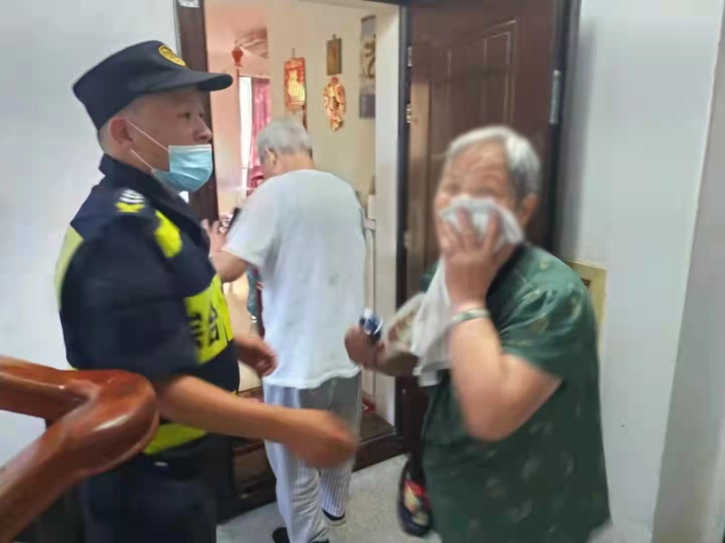 為避免老人再次發(fā)生意外,兩人請(qǐng)示組長(zhǎng)后,便小心翼翼地?cái)v扶著老人,安全地將其護(hù)送到家。