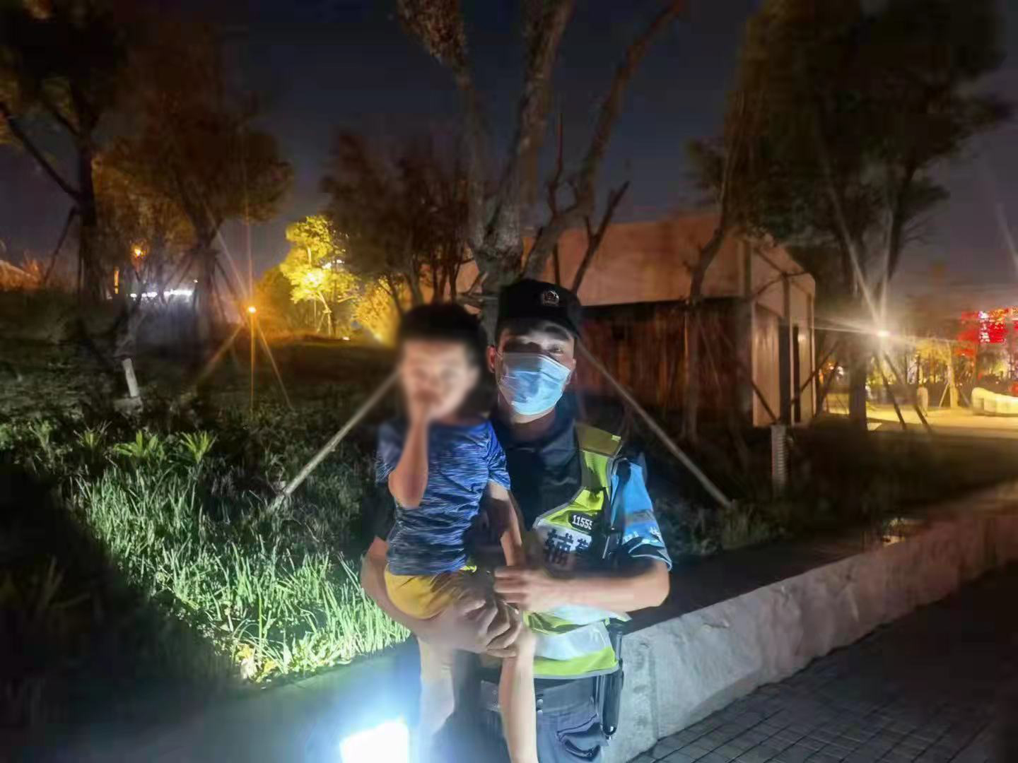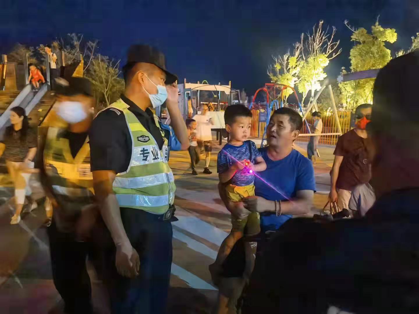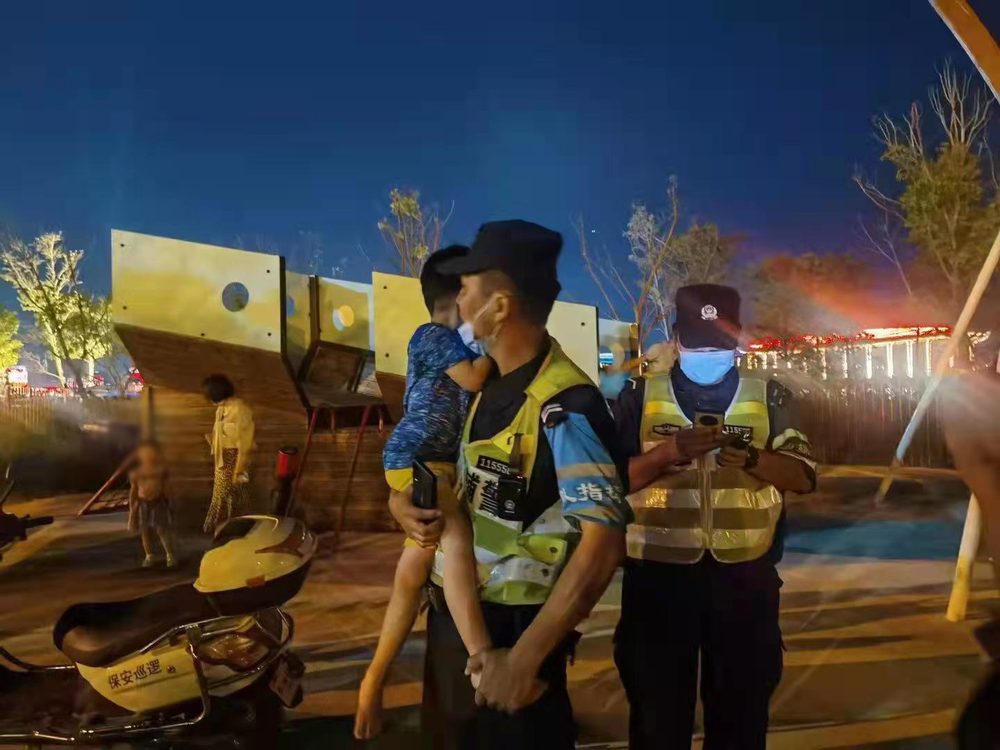 當(dāng)日18:30,滴水湖環(huán)湖景觀帶兒童樂園附近,一名游客與5歲的孩子走散,心急如焚,焦急地向宗保隊(duì)員張楠楠求助。