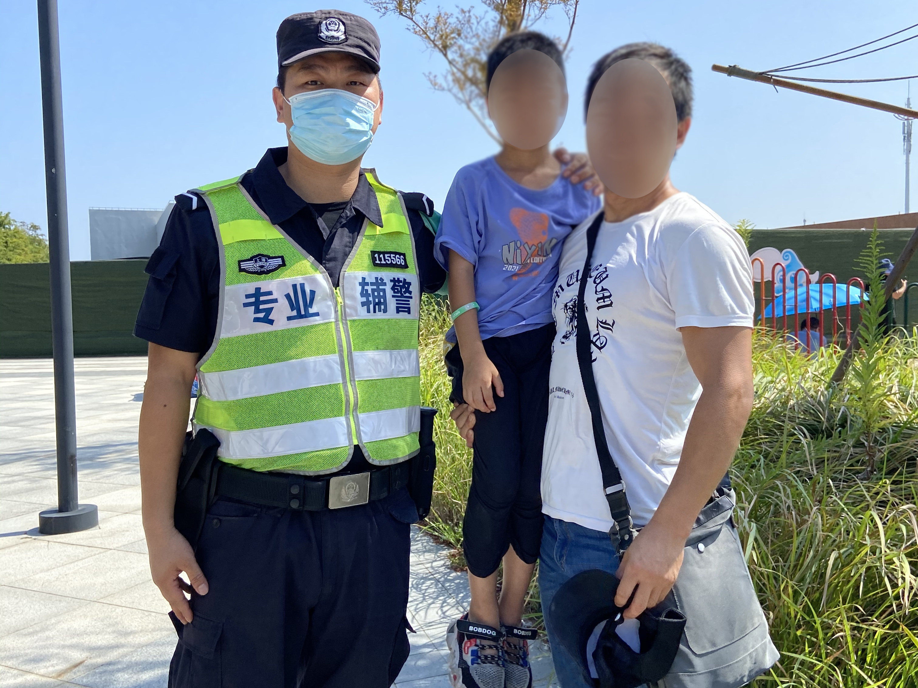 10月4日11:30,張鈺銘、吳玉兵在滴水湖兒童樂(lè)園幫助走散小男孩找到其父親。