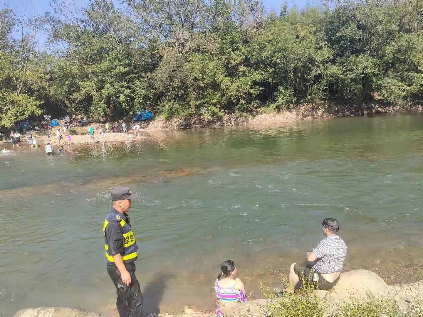 10月4日,張騰配合城管中隊(duì)在徑山雙溪漂流旅游景點(diǎn)進(jìn)行安全保障期間,發(fā)現(xiàn)一名在水中耍水的小女孩,快要游到深水漩渦區(qū)時(shí),立即大喊呼叫提醒。