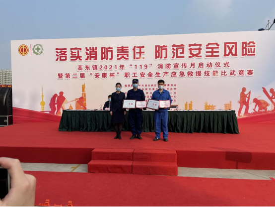高東微型消防站的隊(duì)員們參加高東鎮(zhèn)2021年“119”消防宣傳月啟動(dòng)儀式暨第二屆“安康杯”職工安全生產(chǎn)應(yīng)急救援技能比武競(jìng)賽,取得了二等獎(jiǎng)的好成績(jī)。