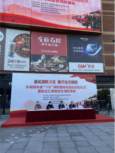 東明街道微型消防站隊(duì)員們參加?xùn)|明街道“119”消防宣傳月啟動(dòng)活動(dòng)儀式暨新達(dá)匯商場(chǎng)綜合消防演練的活動(dòng)。