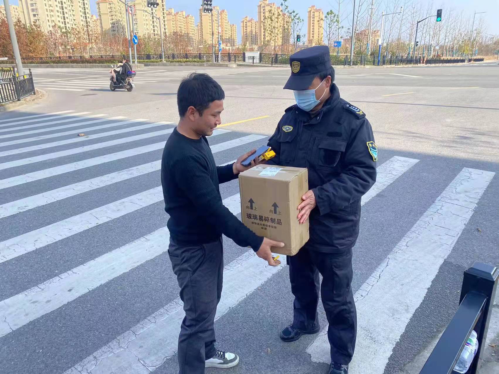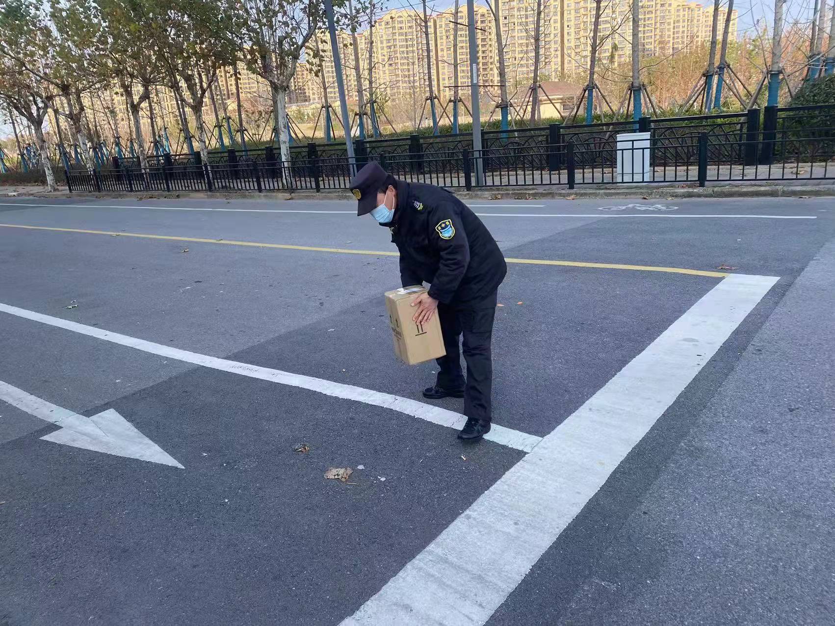 12月8日,宗保公司駐崇明長(zhǎng)興島市容項(xiàng)目隊(duì)員撿到快遞歸還快遞小哥,受到好評(píng)。
