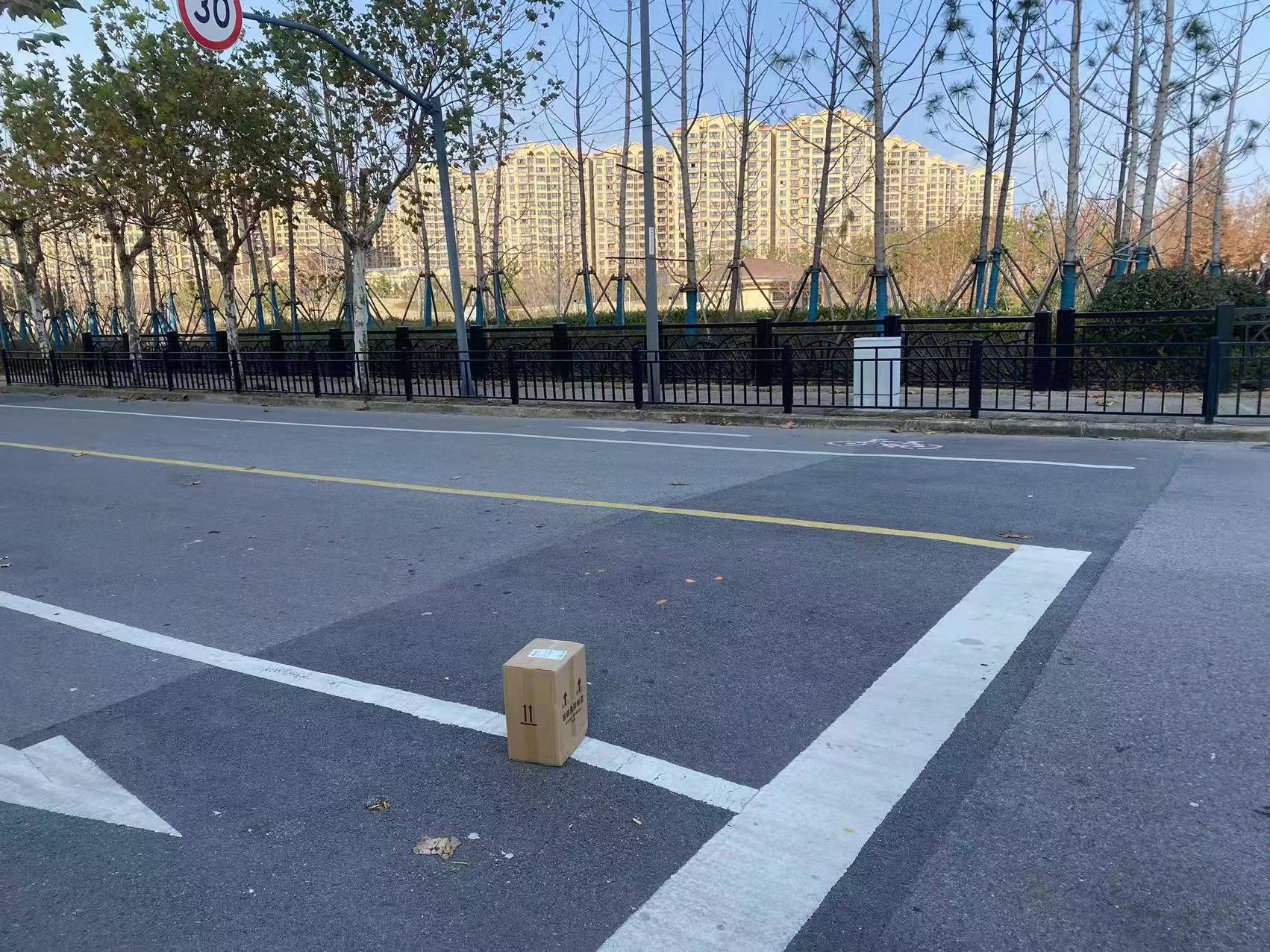 當(dāng)天14:00,白躍濤和尚志遠(yuǎn)在北圓沙路疫苗接種點(diǎn)臨時(shí)停車場(chǎng)維護(hù)車輛秩序時(shí),看到一個(gè)快遞紙箱從行駛的快遞小車上掉落,兩人隨即大聲呼叫,但是快遞員沒有聽到,仍舊快速駛離。