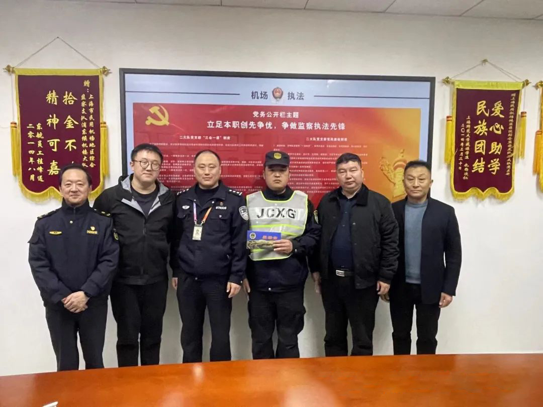 12月17日,浦東機場候機樓派出所邀請上海市民用機場地區(qū)綜合監(jiān)察支隊副支隊長王劍豪、二大隊大隊長張立、副大隊長唐軍、公司副總經(jīng)理楊璞、侯留勇等領導上門為牛占杰送獎,以表彰其在“三聯(lián)”工作中的突出表現(xiàn)。同時,公司副總經(jīng)理楊璞、侯留勇代表公司創(chuàng)始人馮中保向牛占杰頒發(fā)專項獎勵金,以表揚獎勵牛占杰同志為公司發(fā)展所作出的貢獻。