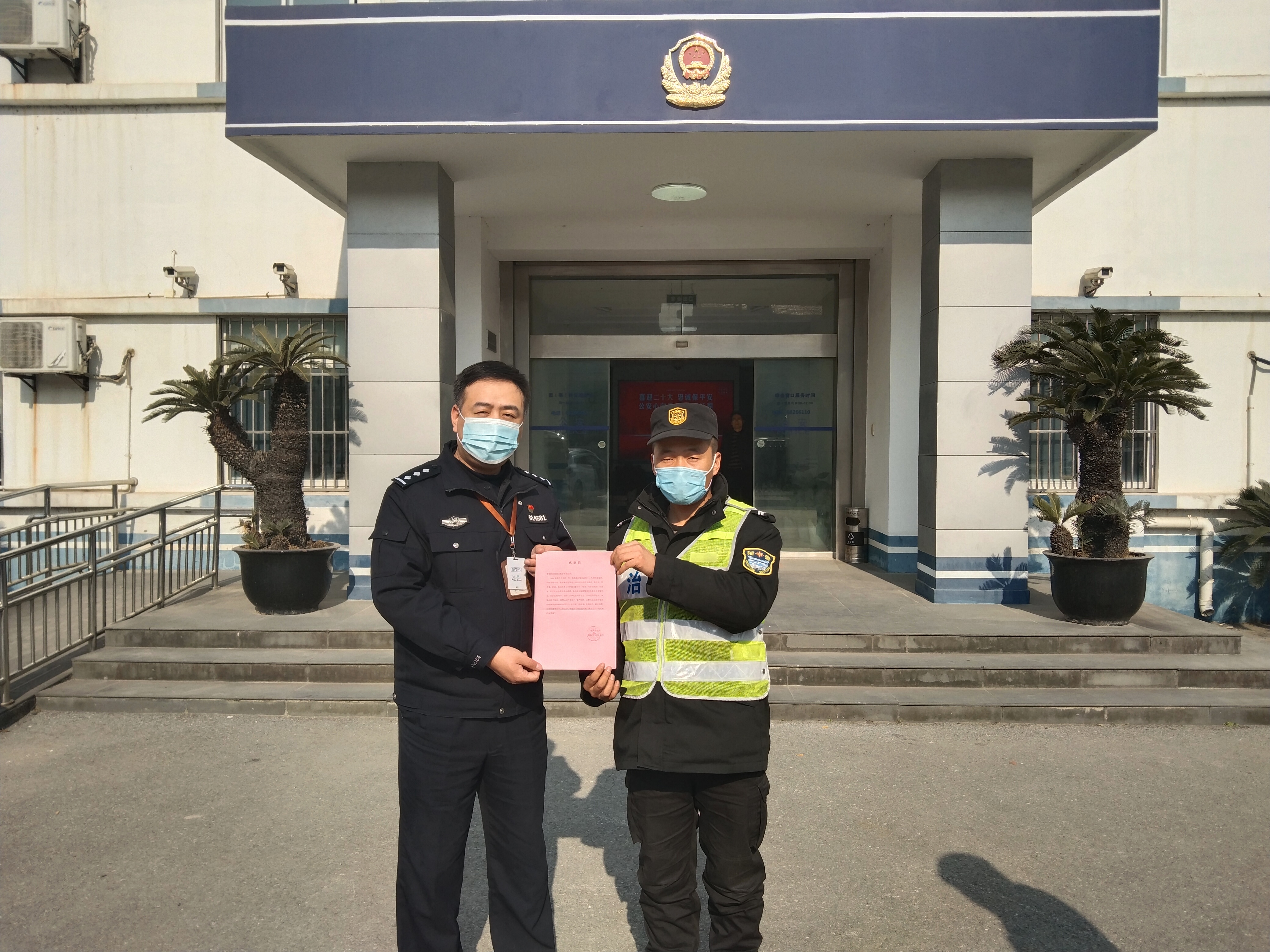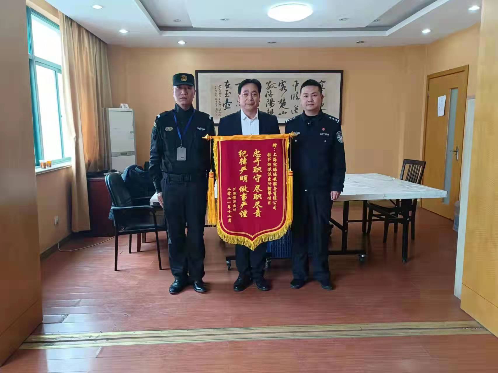 12月25日,宗保公司駐周浦輔警項(xiàng)目收到周浦派出所送來的一面繡有“忠于職守 盡職盡責(zé)”的錦旗,感謝宗保隊(duì)員良好的工作表現(xiàn)。