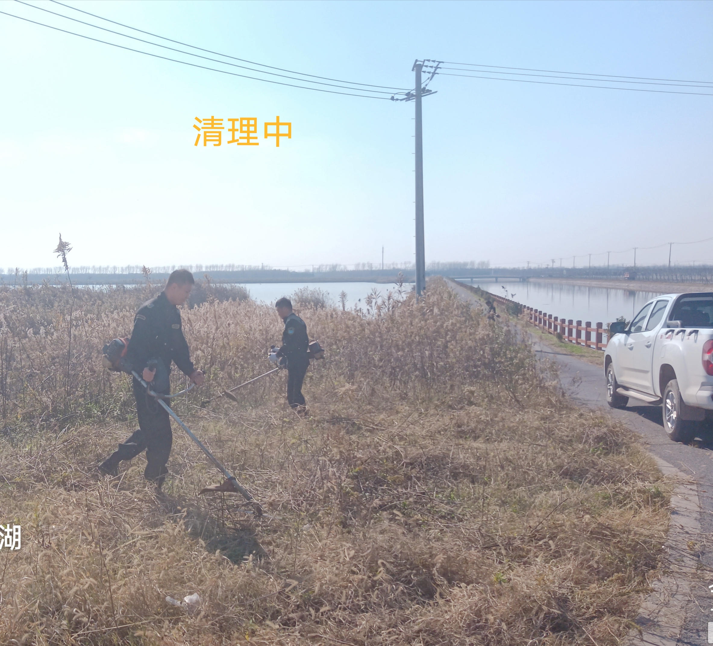該物種長勢茂密,根系發(fā)達,清除難度大,隊員們克服待開發(fā)區(qū)風(fēng)大、天冷等不利影響,采用人工拔、鐵鍬鏟、割草機割的方法進行清理。3天時間里,3500多米范圍內(nèi)的“加拿大一枝黃花”被清除,為保護崇明北湖生態(tài)環(huán)境安全作出了積極努力。