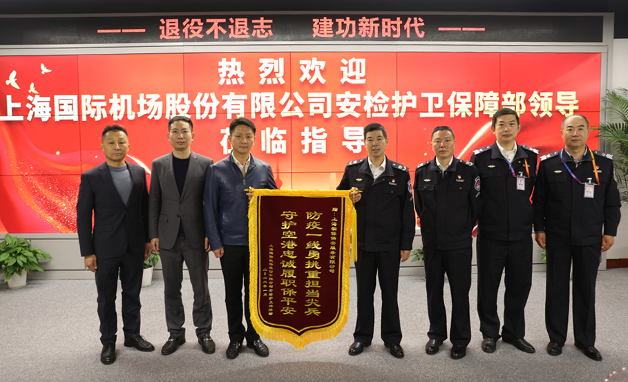 1月25日上午,上海國(guó)際機(jī)場(chǎng)股份有限公司安檢護(hù)衛(wèi)保障部黨委書記鮑飛榮、紀(jì)委書記陳長(zhǎng)波將一面繡有“防疫一線勇挑重?fù)?dān)當(dāng)尖兵 守護(hù)空港忠誠(chéng)履職保平安”的錦旗送到宗保公司,感謝公司對(duì)浦東機(jī)場(chǎng)防疫工作的大力支持和突出表現(xiàn)。