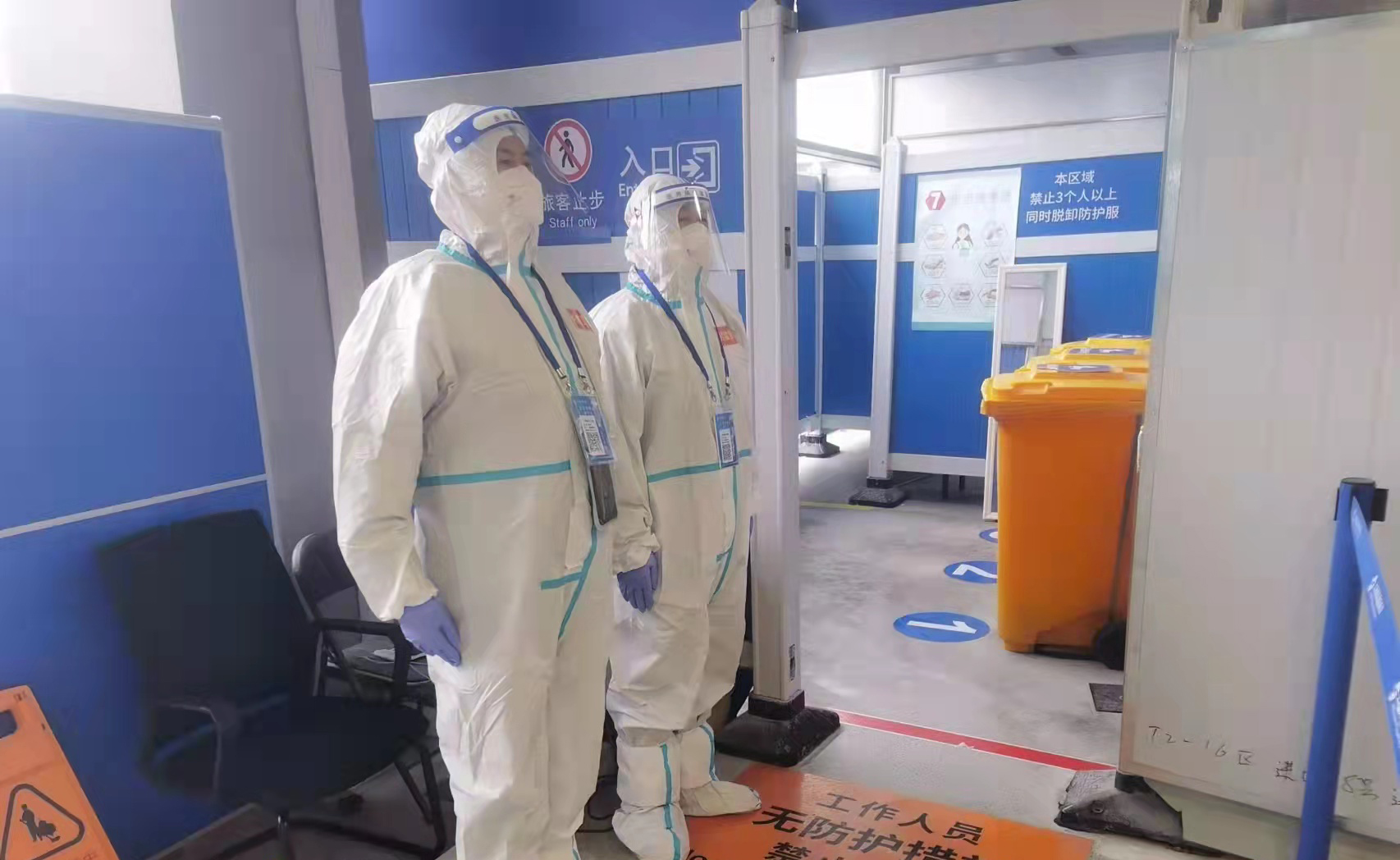宗保公司自駐浦東機(jī)場(chǎng)防疫項(xiàng)目成立以來(lái),按照浦東機(jī)場(chǎng)防疫工作的部署和要求,配強(qiáng)帶隊(duì)骨干,挑選優(yōu)秀員工,細(xì)化防控預(yù)案。駐機(jī)場(chǎng)防疫項(xiàng)目的全體員工思想站位高,責(zé)任意識(shí)強(qiáng),嚴(yán)格執(zhí)行防疫管控標(biāo)準(zhǔn),落實(shí)防疫管控措施,圓滿完成了各項(xiàng)疫情防控工作。