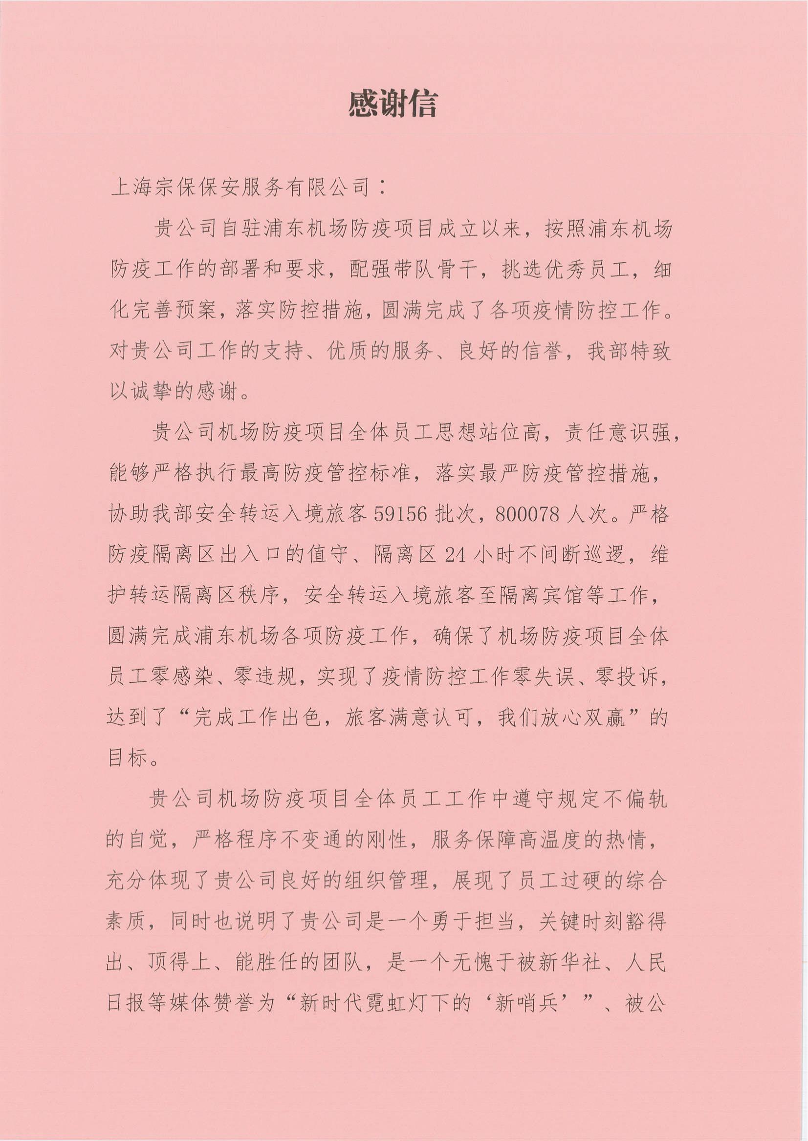 機(jī)場(chǎng)股份公司安檢護(hù)衛(wèi)保障部贈(zèng)送錦旗是對(duì)宗保公司駐機(jī)場(chǎng)防疫項(xiàng)目全體員工所做工作的肯定,不僅僅是榮譽(yù)和鼓勵(lì),更是鞭策和責(zé)任。公司將繼續(xù)發(fā)揚(yáng)主動(dòng)作為、奉獻(xiàn)擔(dān)當(dāng)?shù)淖黠L(fēng),踐行不懼風(fēng)險(xiǎn)、勇毅前行的精神,增強(qiáng)攜手共進(jìn)、履責(zé)于行的協(xié)同意識(shí),與甲方一道共同筑好浦東機(jī)場(chǎng)疫情防控銅墻鐵壁,為全力保障市民健康安全作出新貢獻(xiàn)。