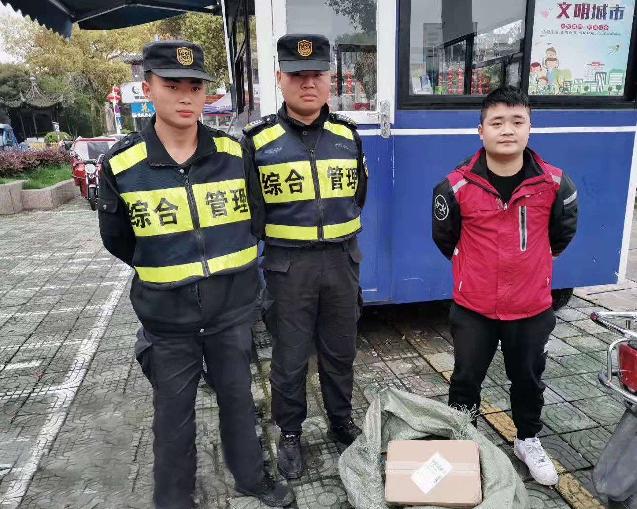 堅守在平凡崗位上的宗保隊員們,做小事,行大愛,一年來,好人好事不斷,拾金不昧已成常態(tài)。2021年3月12日,程健健在徽州路夜班巡查時撿到手機,歸還失主。3月19日,程健健、劉軍在小北街路段巡查時撿到包裹,在原地等待近1個小時,終將包裹歸還給失主。