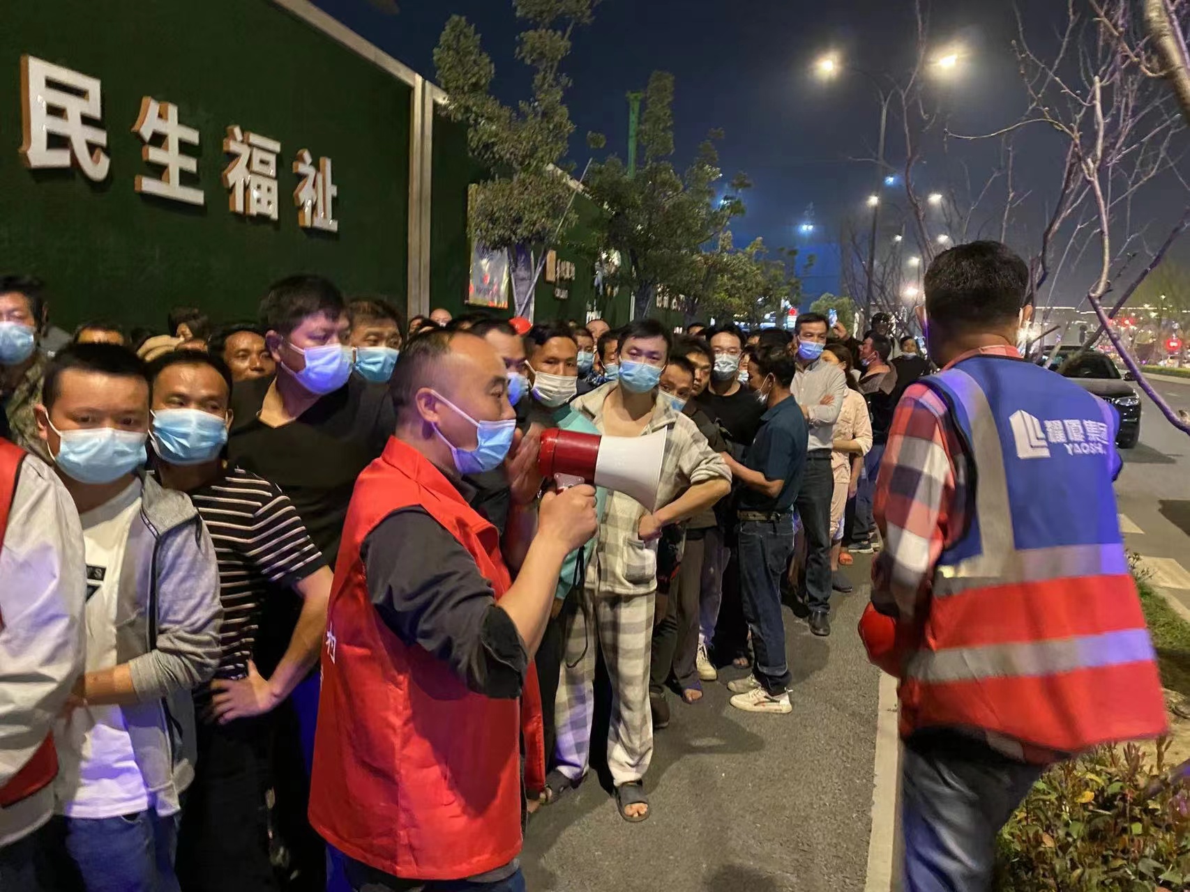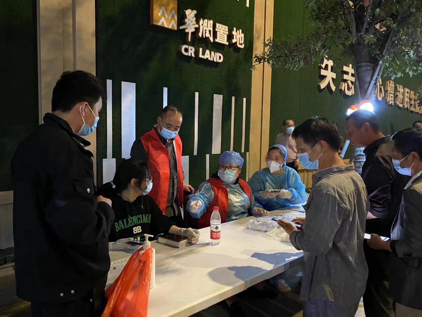 當(dāng)日21:40,民泰隊(duì)員季樂(lè)、申開(kāi)文、薛文帥根據(jù)杭州市余杭區(qū)西溪源警務(wù)站的統(tǒng)一安排,協(xié)助西溪源村委到綠汀路地鐵口維護(hù)核酸檢測(cè)現(xiàn)場(chǎng)秩序。
