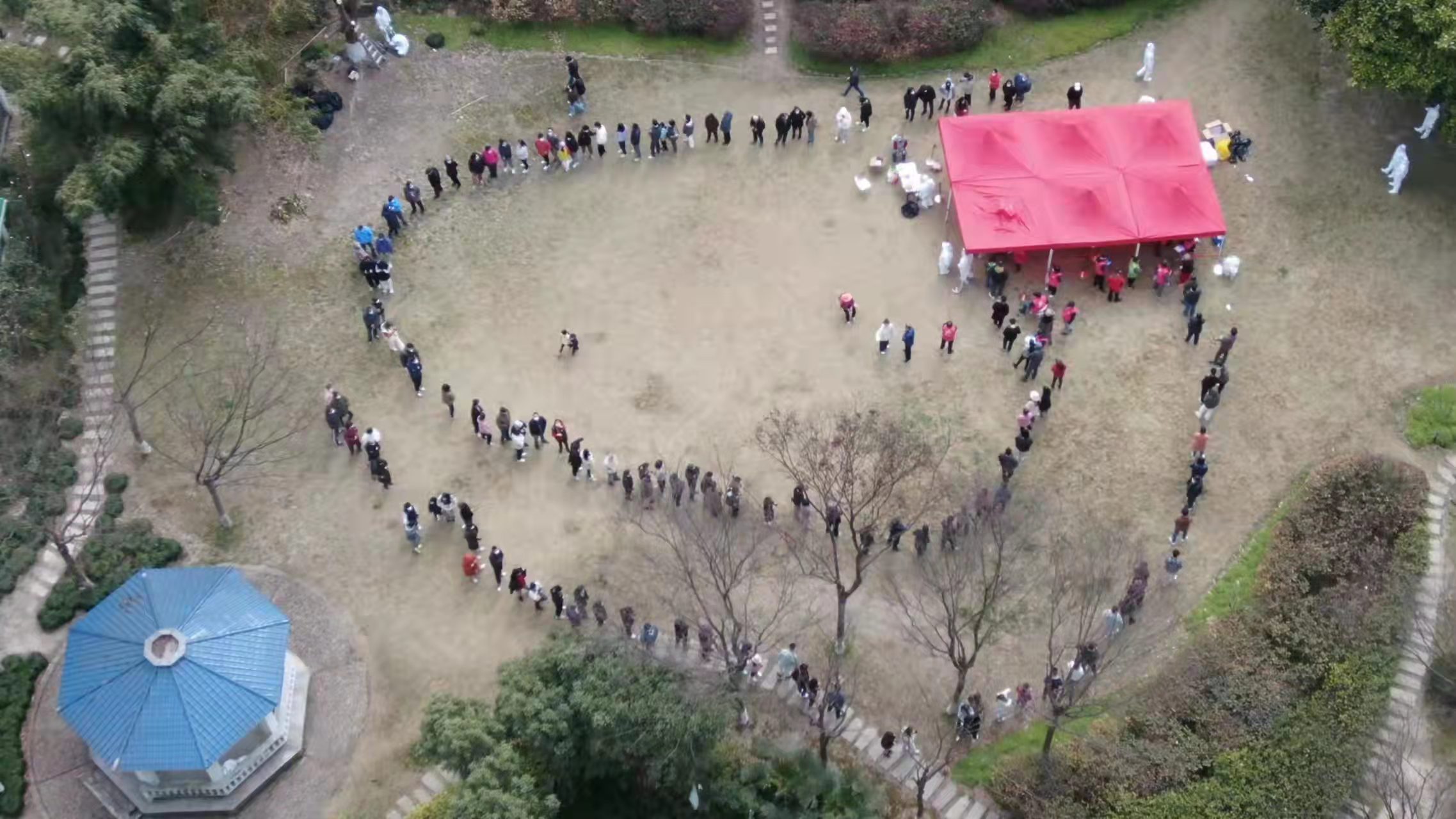啟用無人機(jī)助力疫情防控,對(duì)大型核酸檢測現(xiàn)場進(jìn)行航拍,實(shí)時(shí)將現(xiàn)場畫面?zhèn)鬏斨翍?yīng)急管理中心,為遠(yuǎn)程指揮提供數(shù)據(jù)和情景支撐。通過無人機(jī)搭載的喊話器,勸導(dǎo)小區(qū)居民積極參加核酸檢測,并提示大家服從現(xiàn)場安排,有序排隊(duì),戴好口罩,保持2米安全距離。